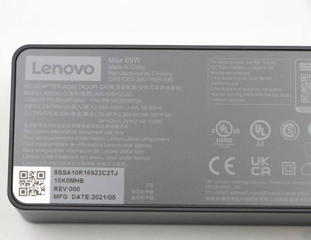 Lenovo 5A10W86255, Portátil, Interior, 100 - 240 V, 50/60 Hz, 65 W, 5 - 20 V