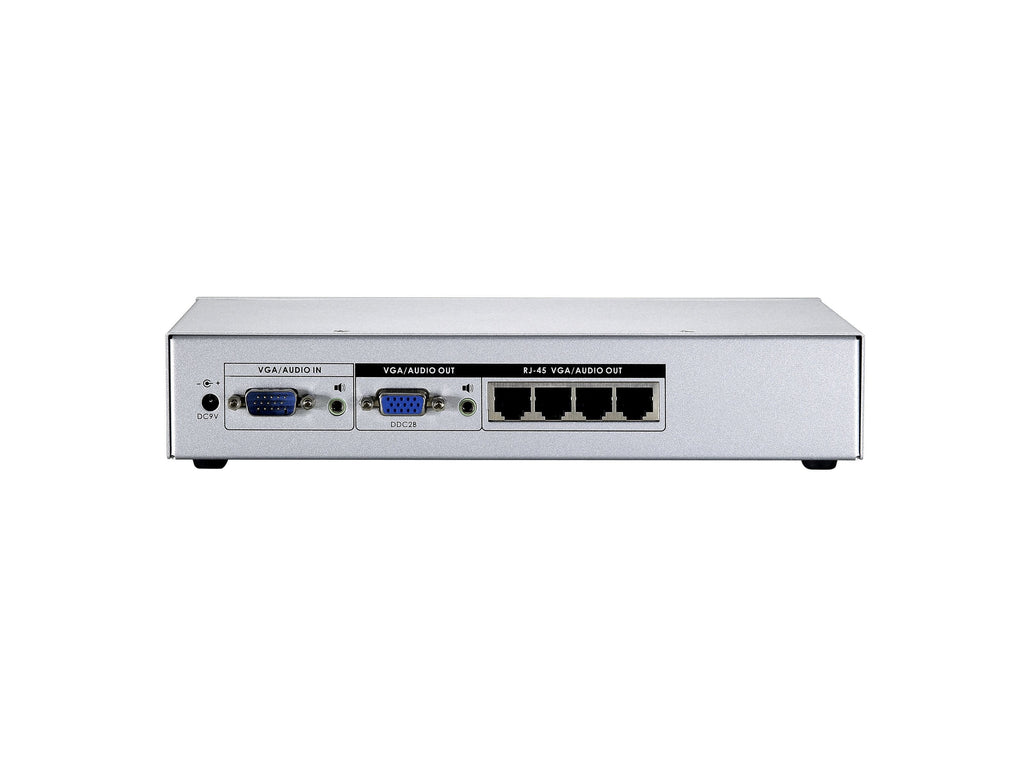 Usando el AVE-9304A un repetidor de 4 puertos, los usuarios pueden replicar la señal y transmitirla a 4 receptores o repetidores conectados. El AVE-9304A forma parte integral de una red más grande, si los usuarios quieren extender la red de difusión hasta 900 metros.
