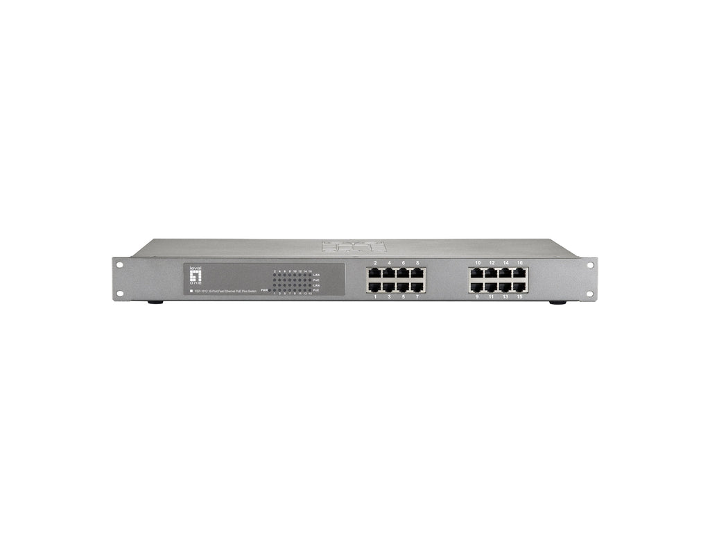 El LevelOne FEP-1612 ofrece 16 puertos Fast Ethernet a 10/100Mbps con interfaces PoE IEEE 802.3at/af. Soporta Auto MDI / MDI-X en los 16 puertos y ofrece la función de inyección PoE sobre todos los puertos, potenciando remotamente aquellos dispositivos compatibles con las normas IEEE 802.3af o 802.3at.