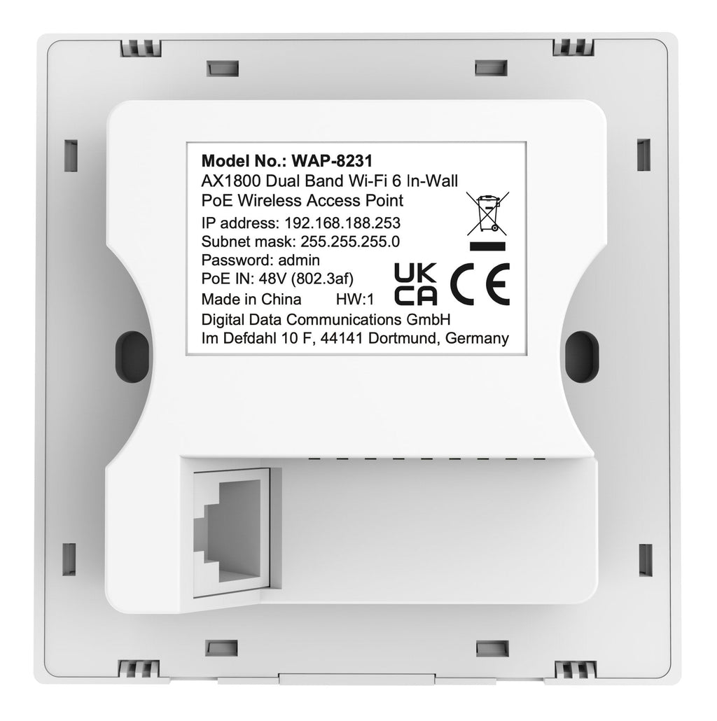 LevelOne WAP-8231, 2,4 GHz, 5 GHz, 1800 Mbit/s, WPA2-AES, WPA3, 10,100,1000 Mbit/s