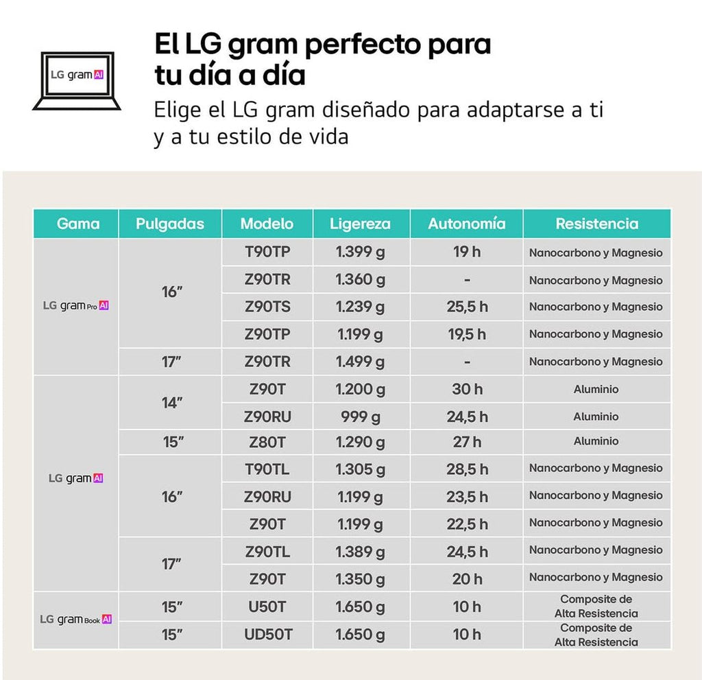 - Con solo 1,2 kg de peso, hasta 23,5 h y 16,8 mm de grosor, el LG gram te acompaña a donde quieras, combinando ligereza y autonomía para una libertad sin límites