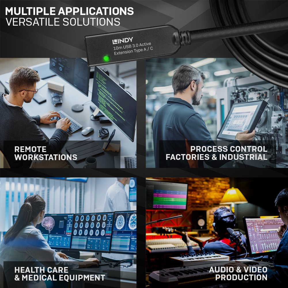 Lindy 43376 cable USB USB 3.2 Gen 1 (3.1 Gen 1) 10 m USB A USB C Negro