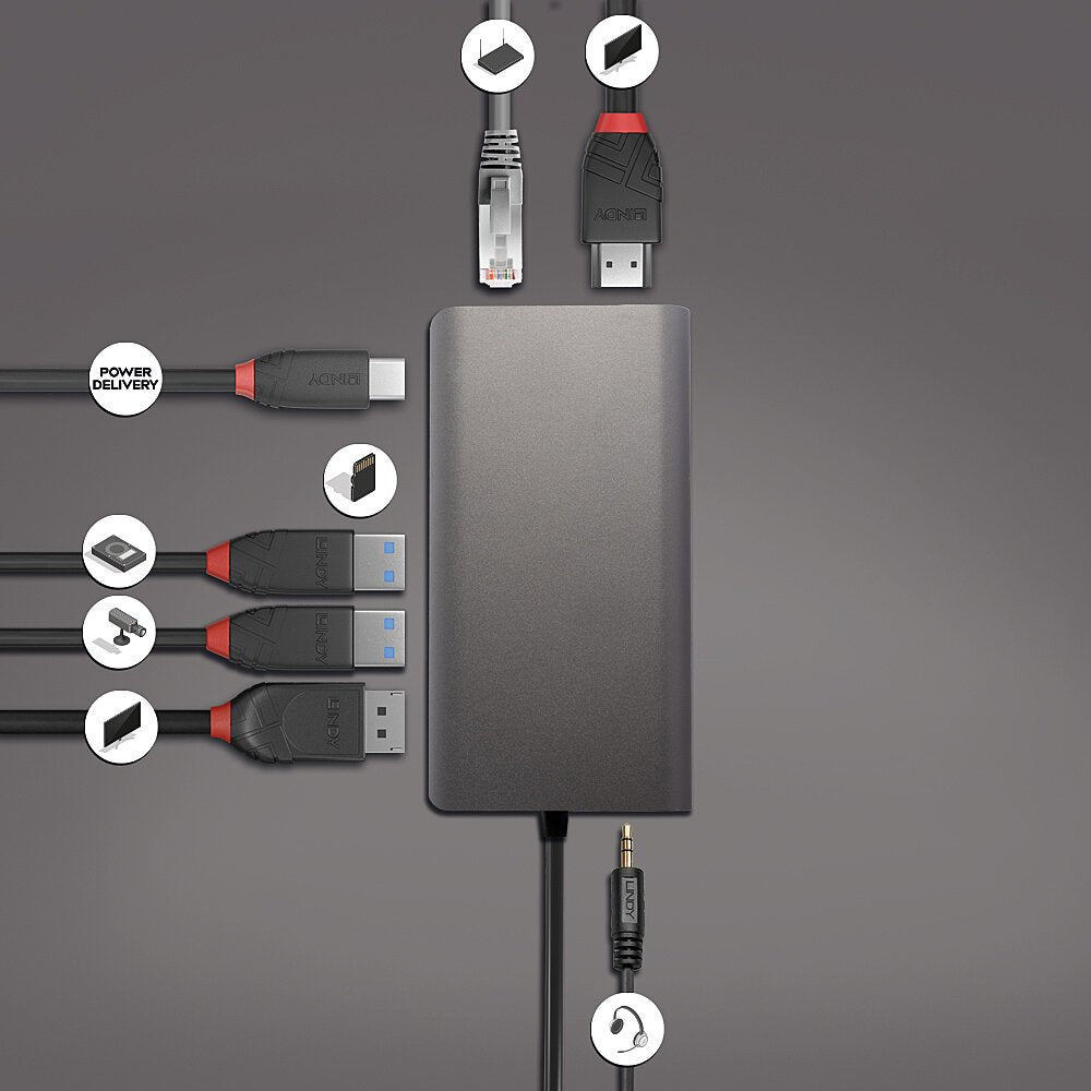 Lindy 43323 base para portátil y replicador de puertos Alámbrico USB 3.2 Gen 1 (3.1 Gen 1) Type-C Negro, Gris