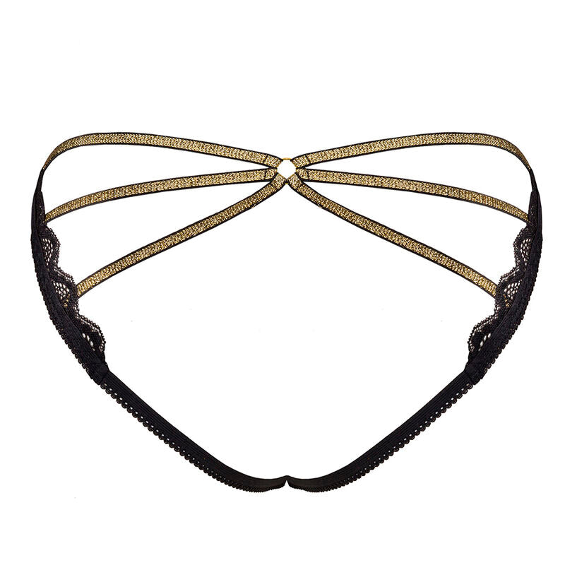 Las bragas negras únicas y extraordinarias son la encarnación de la feminidad, el atractivo sexual y la sensualidad. La espalda discreta, que es una combinación de sutiles adornos de encaje y expresivos tirantes que enfatizan y realzan los glúteos, le da carácter a este modelo y lo distingue de otras opciones clásicas. Panty Muled es también un equilibrio entre la delicadeza del encaje y su tono negro y oscuro, que también se rompe en cierta medida con rayas brillantes.