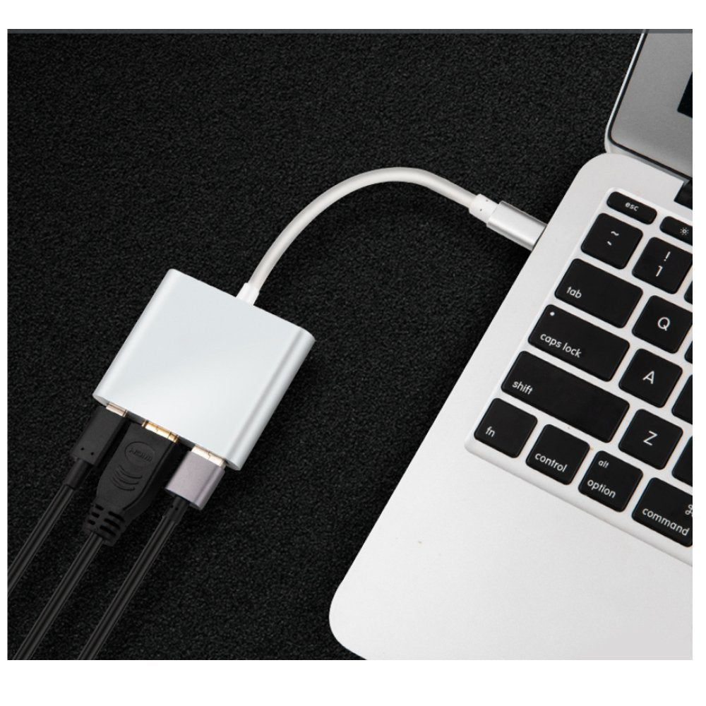 - HUB USB-C 3 en 1: con un puerto Tipo-C, un USB 3.0 y un puerto HDMI, conectado con un puerto Tipo-C de salida, lo que proporciona una alta velocidad de transferencia de datos; carga rápida para su computadora portátil; y expansión de imagen vívida a través de HDMI.