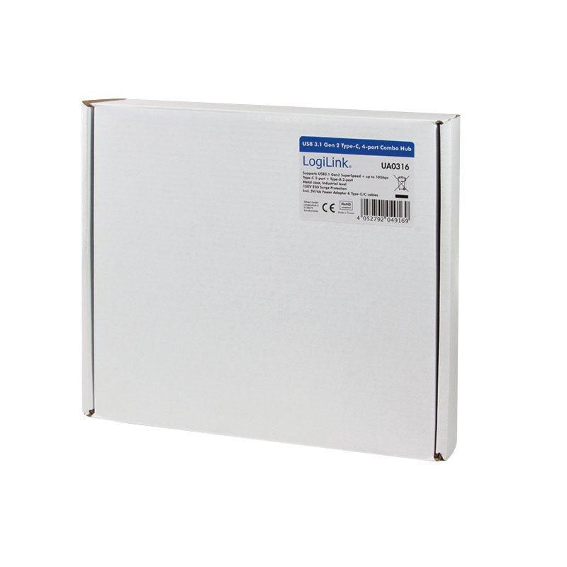 LogiLink UA0316, USB 3.2 Gen 1 (3.1 Gen 1) Type-C, USB 3.2 Gen 2 (3.1 Gen 2) Type-A, 10000 Mbit/s, Negro, Metal, 0,6 m, RoHS, CE