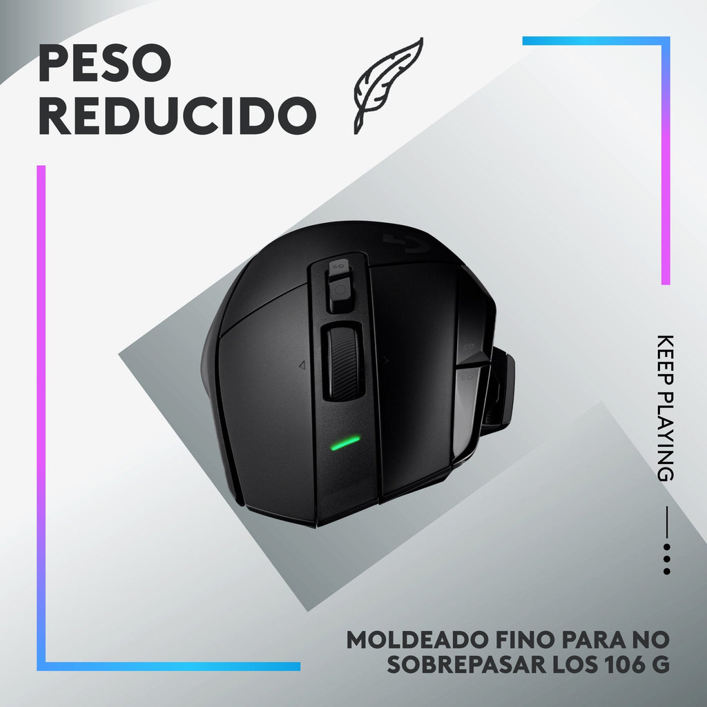 - Inalámbrico LIGHTSPEED: el ratón inalámbrico presenta una conectividad de nivel profesional con una respuesta un 68%, más rápida que la generación anterior y con una mayor fiabilidad
