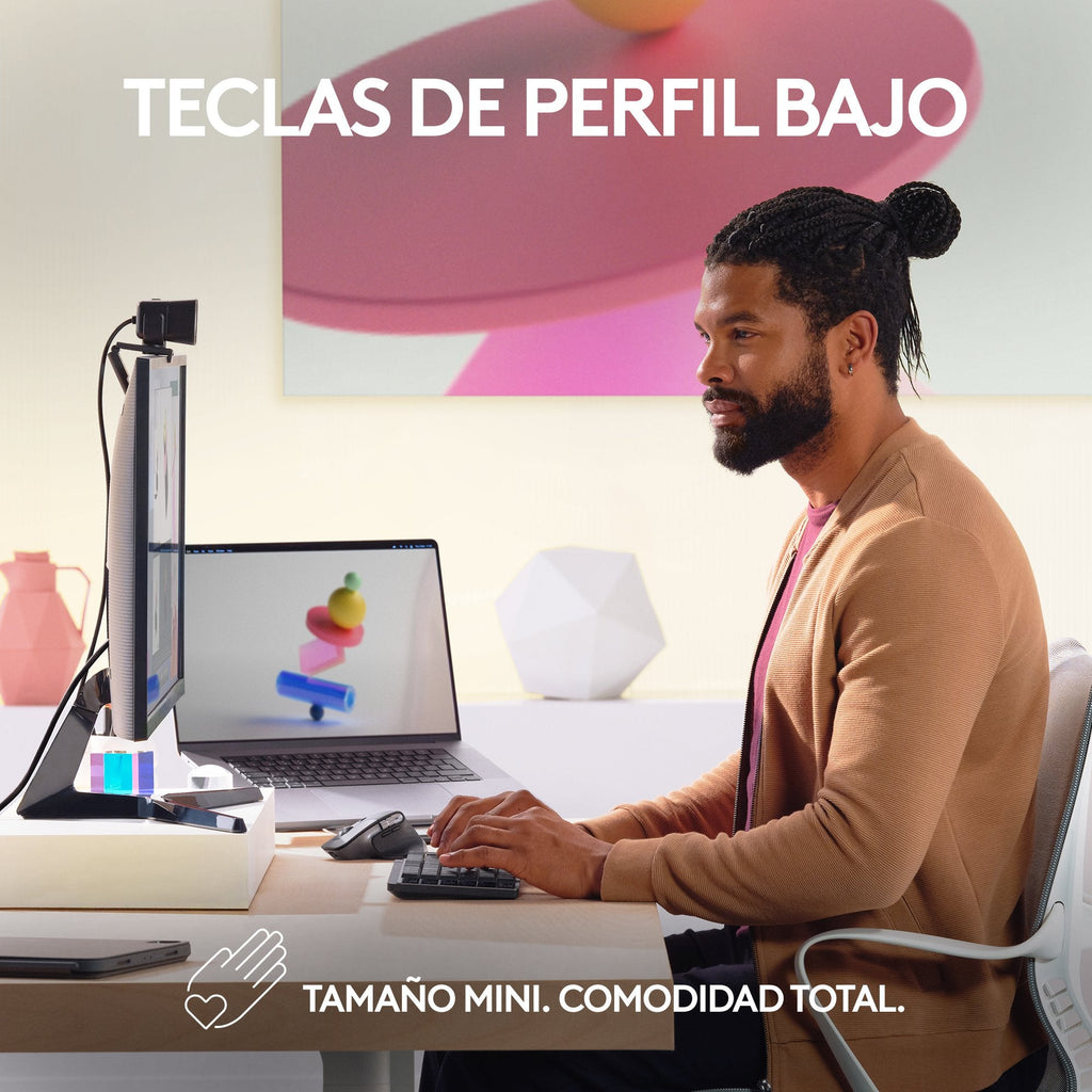 - Tamaño mini con teclas de perfil bajo: mayor comodidad por su forma mini y compacta que cuenta con teclas mecánicas de perfil bajo, para una precisión sin esfuerzo y una mejor ergonomía