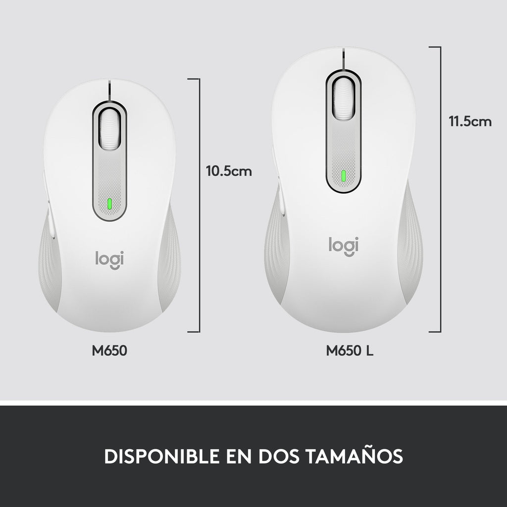 Logitech Signature M650 L, mano derecha, Óptico, RF Wireless + Bluetooth, 4000 DPI, Blanco