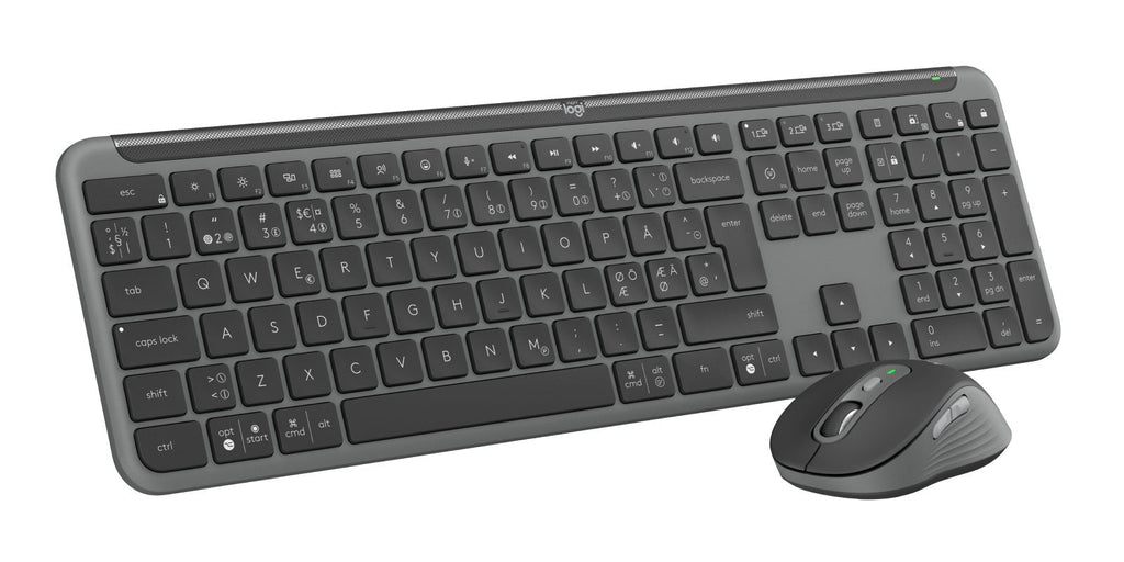 Logitech Signature Slim Combo MK950, Inalámbrico, RF Wireless + Bluetooth, Switch de tecla de tijera, QWERTY, Grafito, Ratón incluido