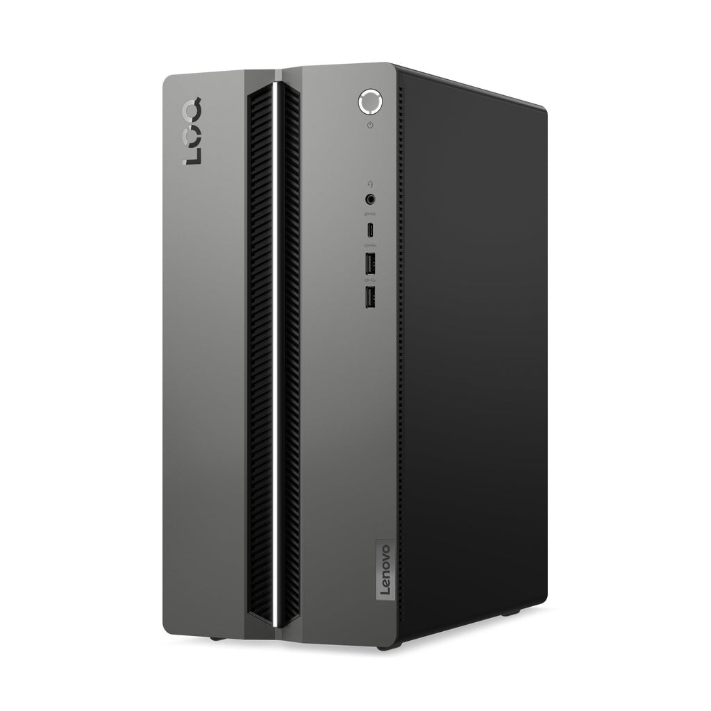 La torre Lenovo LOQ destaca por su combinación de colores de doble tono en Raven Black y Luna Grey, que añade un toque de singularidad a su configuración de juego.