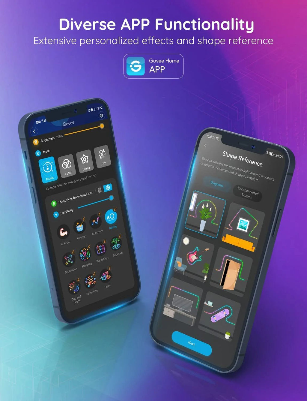 Govee H61A1, Regleta luminosa universal, Ambiente, Cinta adhesiva, Blanco, Silicona, Multi