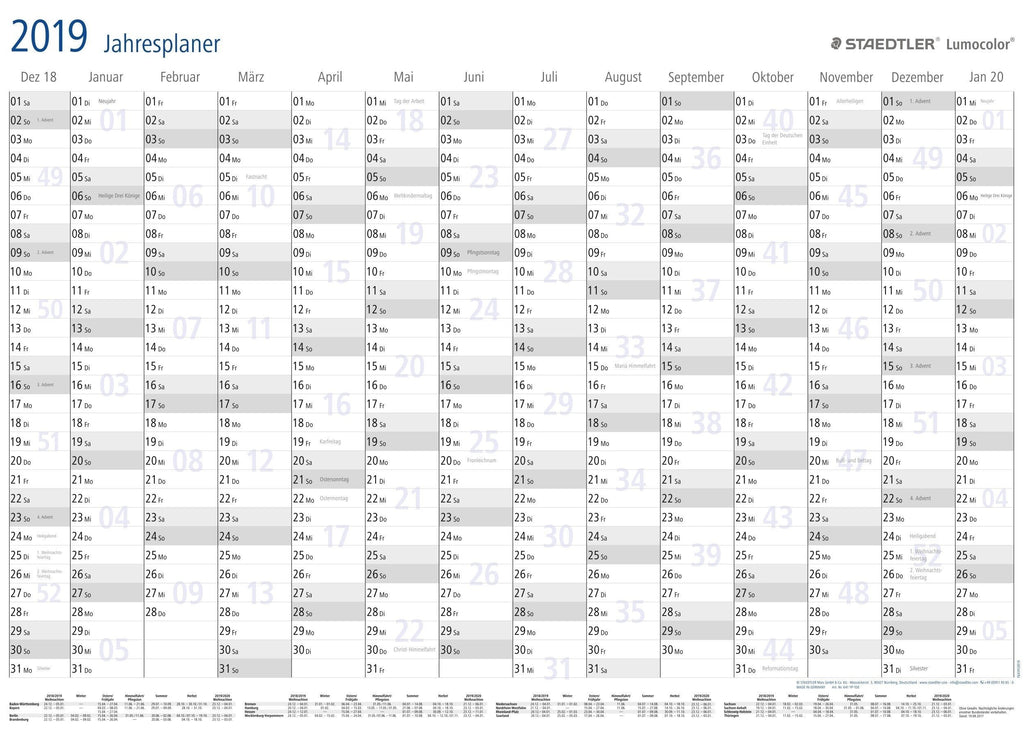 Staedtler Lumocolor year planner 641 YP, Negro, Blanco, Plástico, 1 páginas, 600 mm, 840 mm