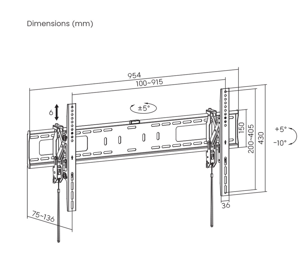 - Compatibilidad con interfaz de montaje (min): 200 x 200 mm Compatibilidad con interfaz de montaje (max): 800 x 400 mm
