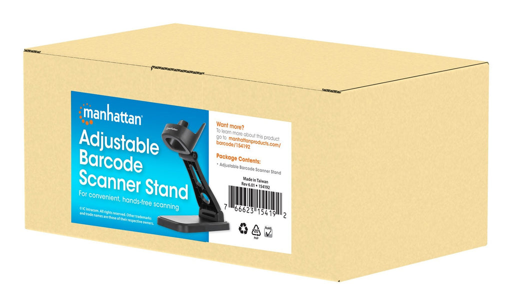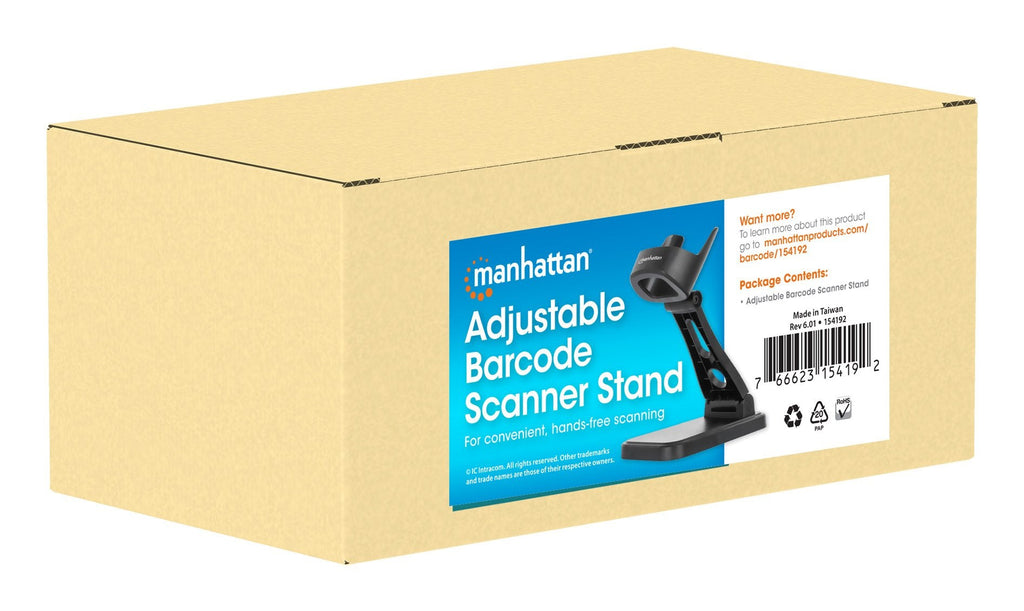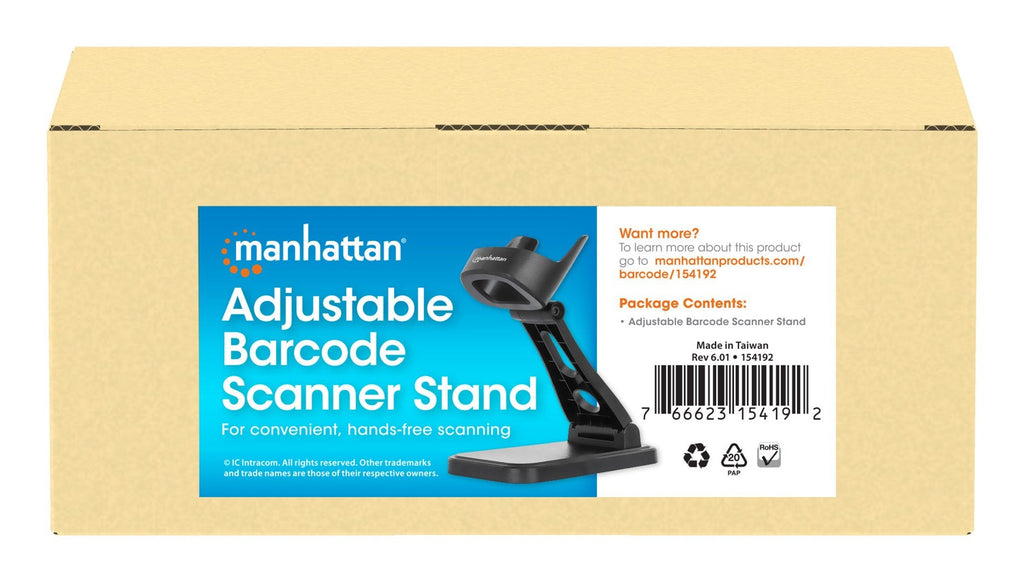 Manhattan 154192, Escáner de código de barras, Soporte pasivo, Interior, Negro