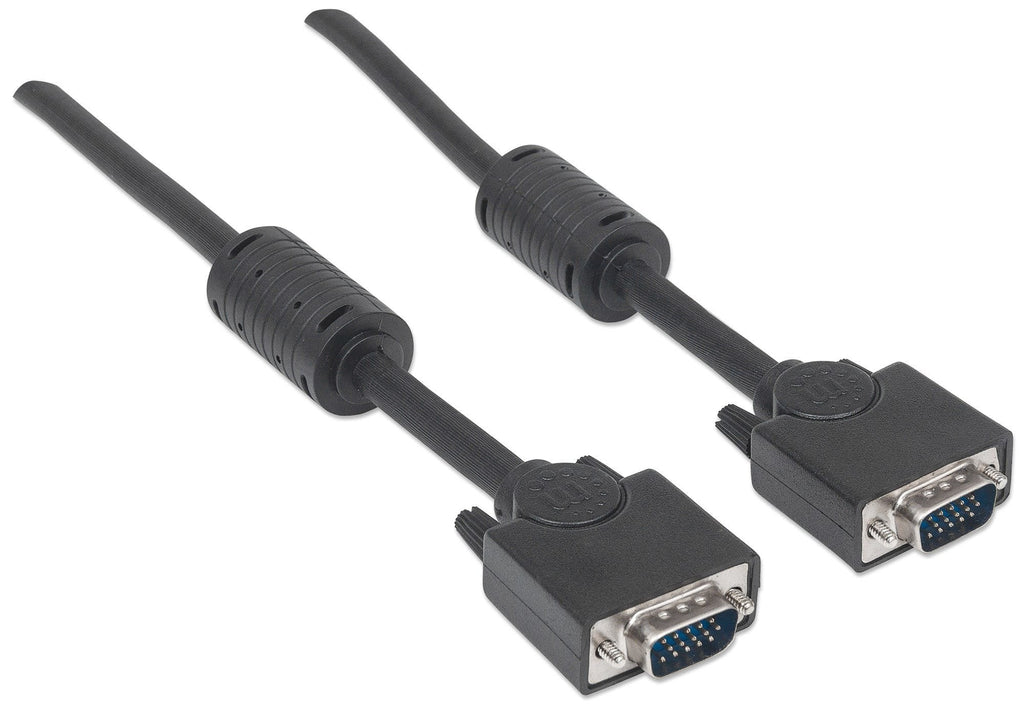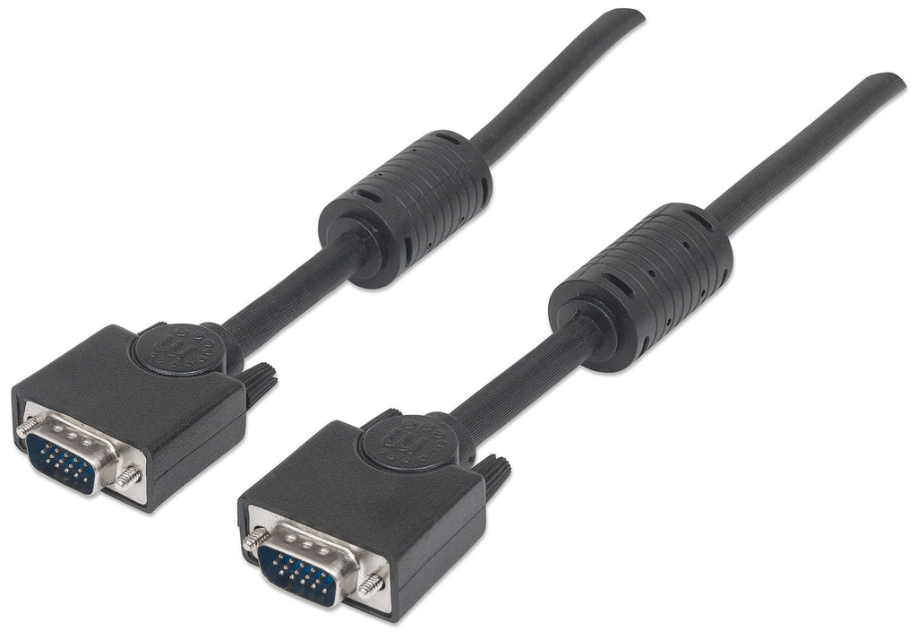 Conexiones confiables para señales de calidad superiorLos Cables SVGA MANHATTAN conectan con facilidad un monitor a una computadora o portátil. Ideal para su uso con vídeo splíters, switches KVM y con cualquier monitor con puerto HD15, computadoras o dispositivos. Los Cables SVGA MANHATTAN están diseñados y construidos con materiales de calidad para entregar transmisiones en aplicaciones de vídeo. Blindaje forrado y trenzado con núcleos de ferrita ayudan a minimizar la interferencia EMI y su construcción cableado mini coaxial (RGB) y de par de vídeo se combinan para proporcionar imágenes claras con distorsión reducida sobre largas distancias.