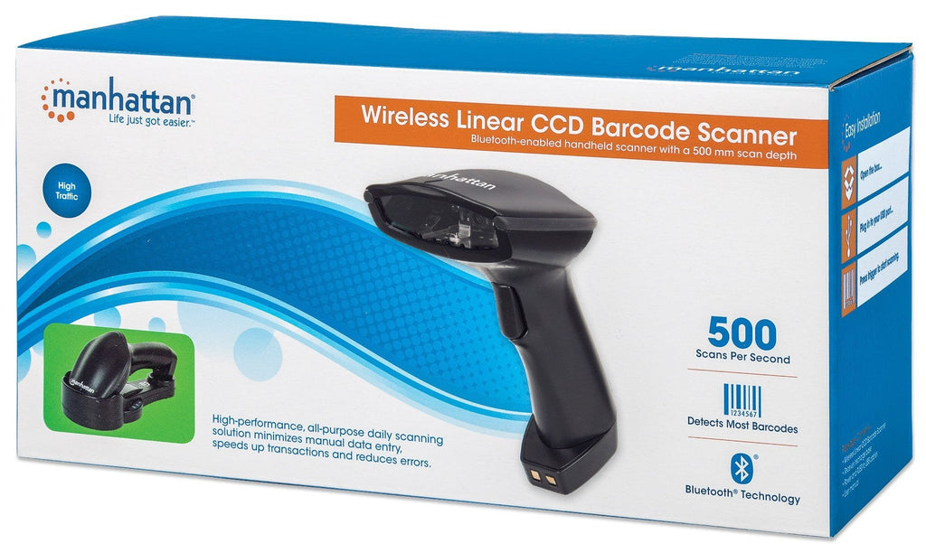 Mejora la velocidad, precisión y productividadLos Lectores de Código de Barras CCD Inalámbricos Bluetooth MANHATTAN CCD entregan lecturas de alta calidad en un rango amplio para las funciones de recolección de datos para ayudar a mejorar las transacciones de rutina, los procesos en papel e incrementar la productividad. El lector CCD (Dispositivo de Cargas Acopladas) no presenta partes móviles para proporcionar años de servicio leyendo los códigos de barras más populares, incluyendo UPC, EAN y GS1. Fácil de implementar y simple de usar, el decodificador envía los datos leídos a una aplicación donde aparece la descripción del producto como si éste fuese tecleado a la computadora.Su tecnología inalámbrica proporciona un rango de operación de hasta 80 m desde la base de carga. Con una tasa de lectura de 500 por segundo y un rango de hasta 500 mm este modelo ofrece un alto desempeño en solución de códigos de barras para punto de venta, transportación, almacenes, oficina y aplicaciones industriales para minimizar la entrada manual de datos, transacciones veloces y reducción de errores.