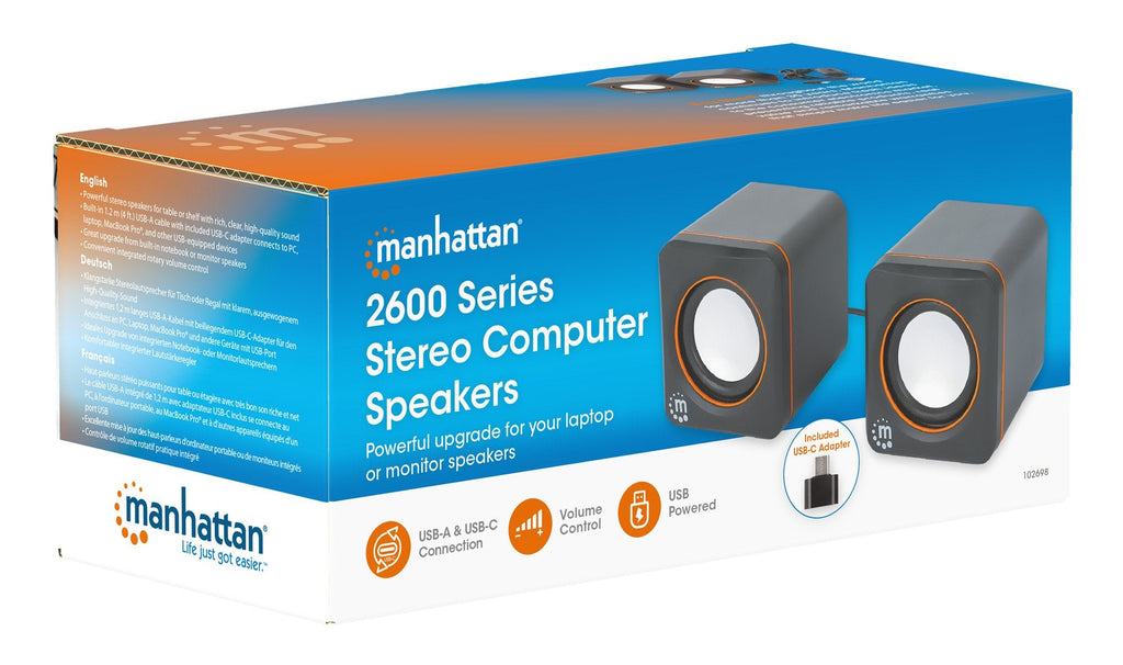 Manhattan 2600 Series, 2.0 canales, Alámbrico, 6 W, 5 Ω, Negro, Naranja