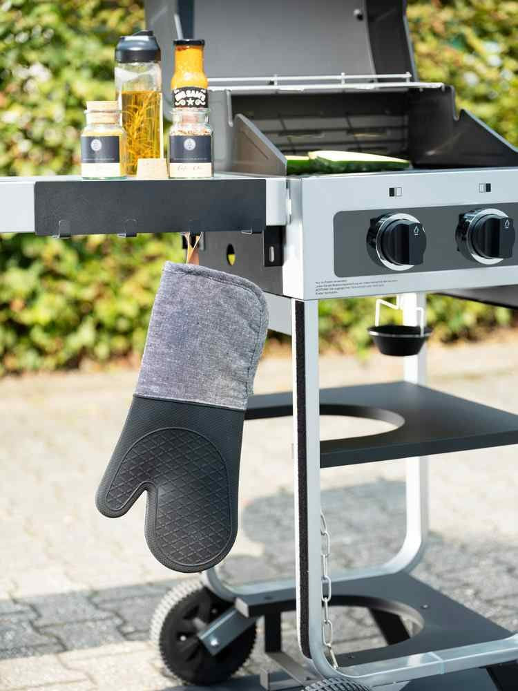 WENKO 55041100, Juego de manoplas de horno, Negro, Algodón, 30 °C, Lavado de manos, 180 mm