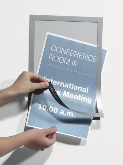 Marco autoadhesivo tamaño A4 con panel frontal magnético separable para intercambiar información de forma rápida y sencilla. Para fijar sobre todo tipo de superficies lisas como plástico o cristal. Fácil de pegar y despegar múltiples veces.