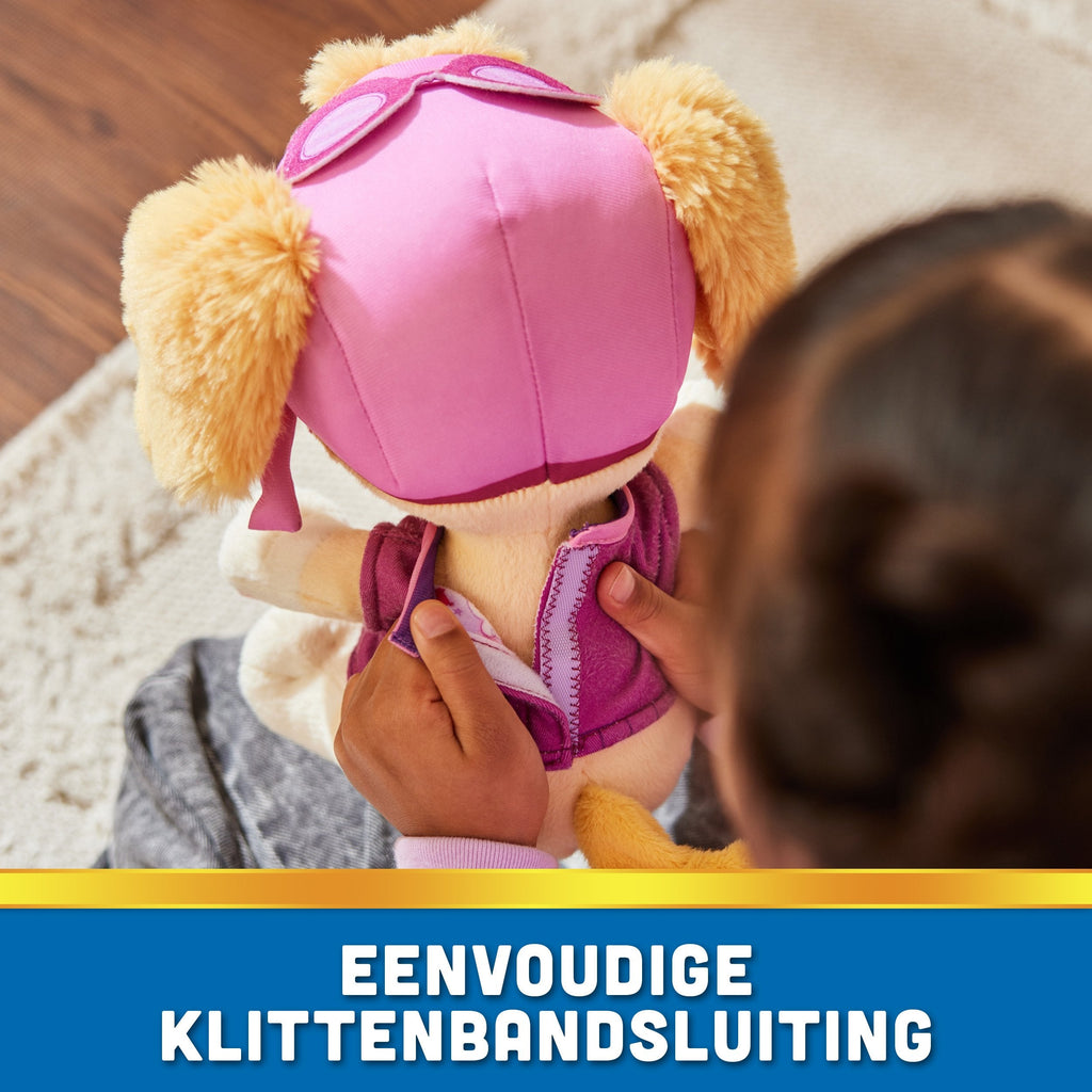 - PELUCHE OFICIAL DE PAW PATROL: Skye está hecha con el estilo auténtico de PAW Patrol y es idéntica al personaje de la serie. Presenta un pelaje supersuave y detalles realistas que dan vida a esta cachorrita