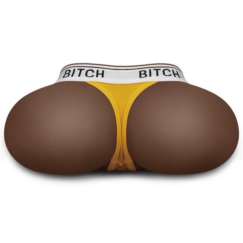 Masturbador con un diseño ideal. Este masturbador en forma de culo cuenta con un tanga amarillo con la palabra Bitch. Está bellamente diseñado y moldeado a partir de una modelo para una experiencia más auténtica. La inserción del ano es mucho más apretada y cuenta con numerosas curvas. Podrás acostarla o sostenerla cerca de ti mientras exploras cualquiera de sus dos intrincadas inserciones.