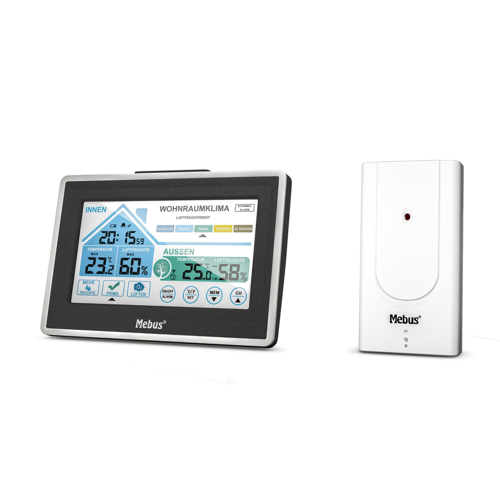 Mebus 01026, Negro, Blanco, Higrómetro de interior, Termómetro de interior, Higrómetro de exterior, Termómetro para exteriores, Higrómetro, Termómetro, Higrómetro, Termómetro, F, °C, Batería