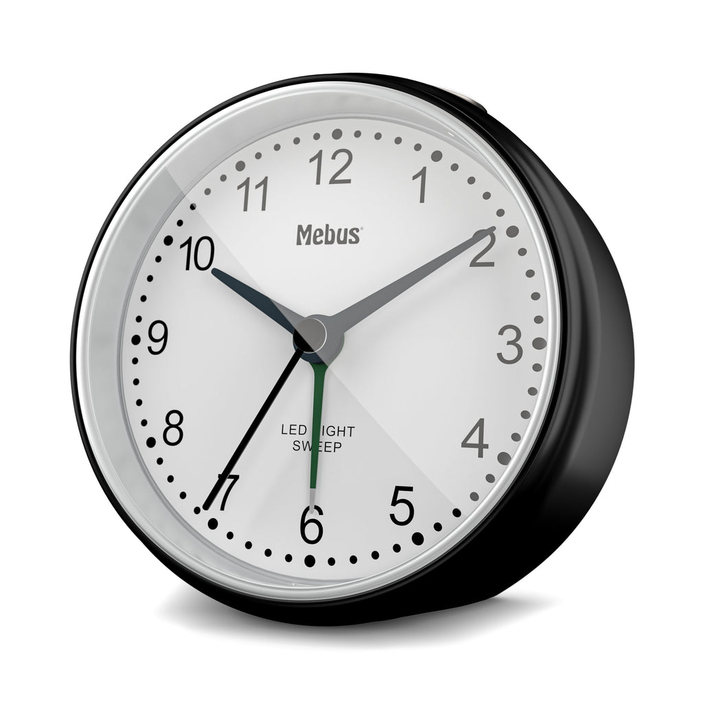 Mebus 25806, Reloj despertador analógico, Alrededor, Negro, Blanco, 12h, Blanco, Analógica