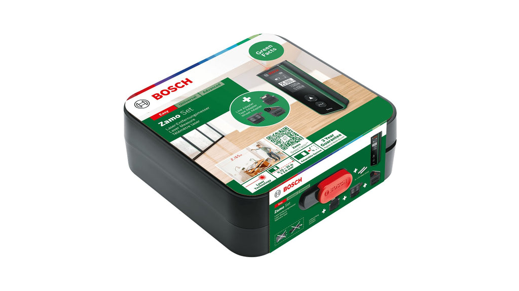 Bosch Zamo Set, Medidor láser de distancias, cm, pies, entrada, m, mm, yd, Negro, Verde, Digital, LCD, 25 m