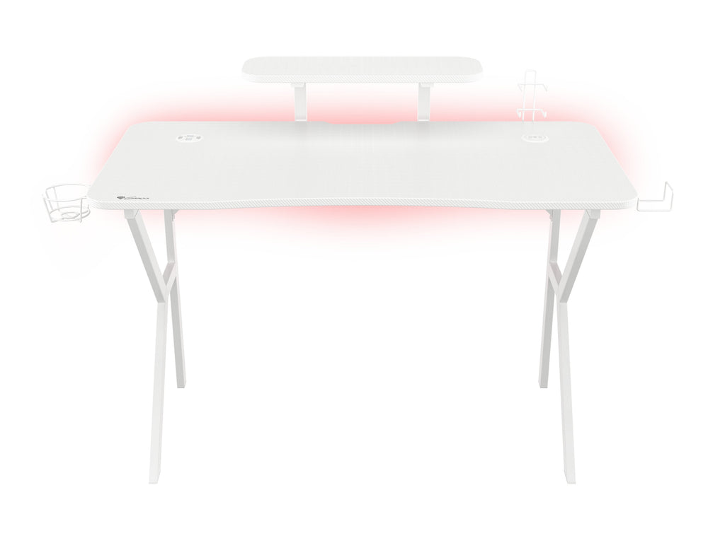 Cada elemento del escritorio está fabricado en color blanco. El acabado en carbono del tablero combinado con la fenomenal retroiluminación RGB te permitirá crear un soporte gaming único. El mando a distancia incluido te permitirá controlar numerosos modos y efectos para adaptarlos a tus preferencias.