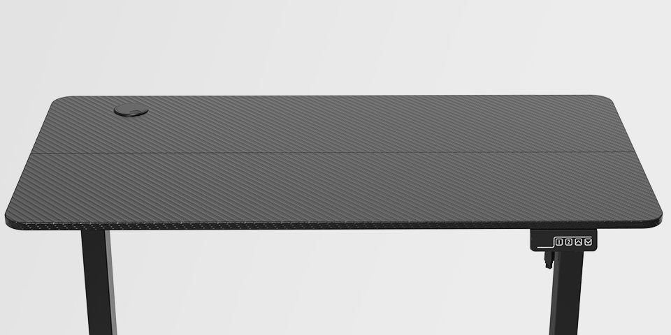 La amplia superficie de la mesa 110x60cm no solo ofrece espacio suficiente para monitores y periféricos, sino que también cuenta con un acabado en fibra de carbono resistente al agua y al desgaste. Este diseño premium añade un toque moderno y profesional a tu setup, asegurando durabilidad y un estilo impecable.