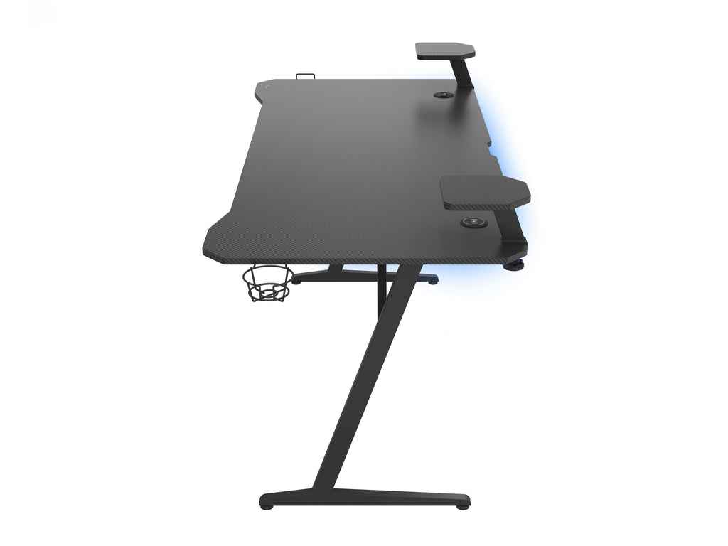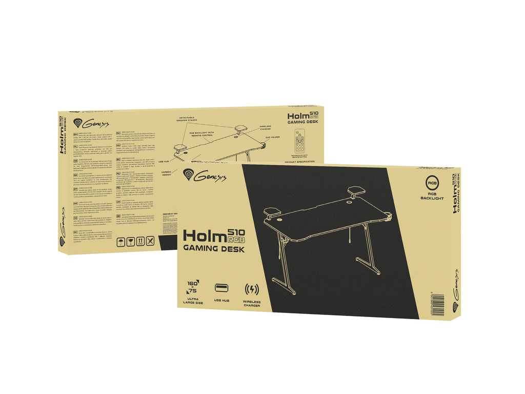 El escritorio mide 160 cm de largo y 75 cm de ancho. Sus dimensiones garantizan una enorme superficie útil en la que podrás colocar todos los accesorios necesarios sin limitar tus movimientos en el juego. El estético acabado en carbono te permitirá combinar perfectamente el escritorio con cualquier habitación y añadir un toque de elegancia. Elige comodidad y originalidad con Holm 510 RGB!