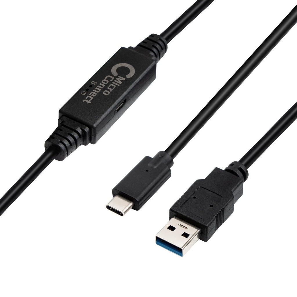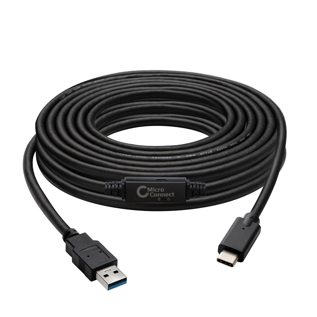 Microconnect USB3.1CA5AMP, 5 m, USB C, USB A, USB 3.2 Gen 1 (3.1 Gen 1), 5 Gbit/s, Negro