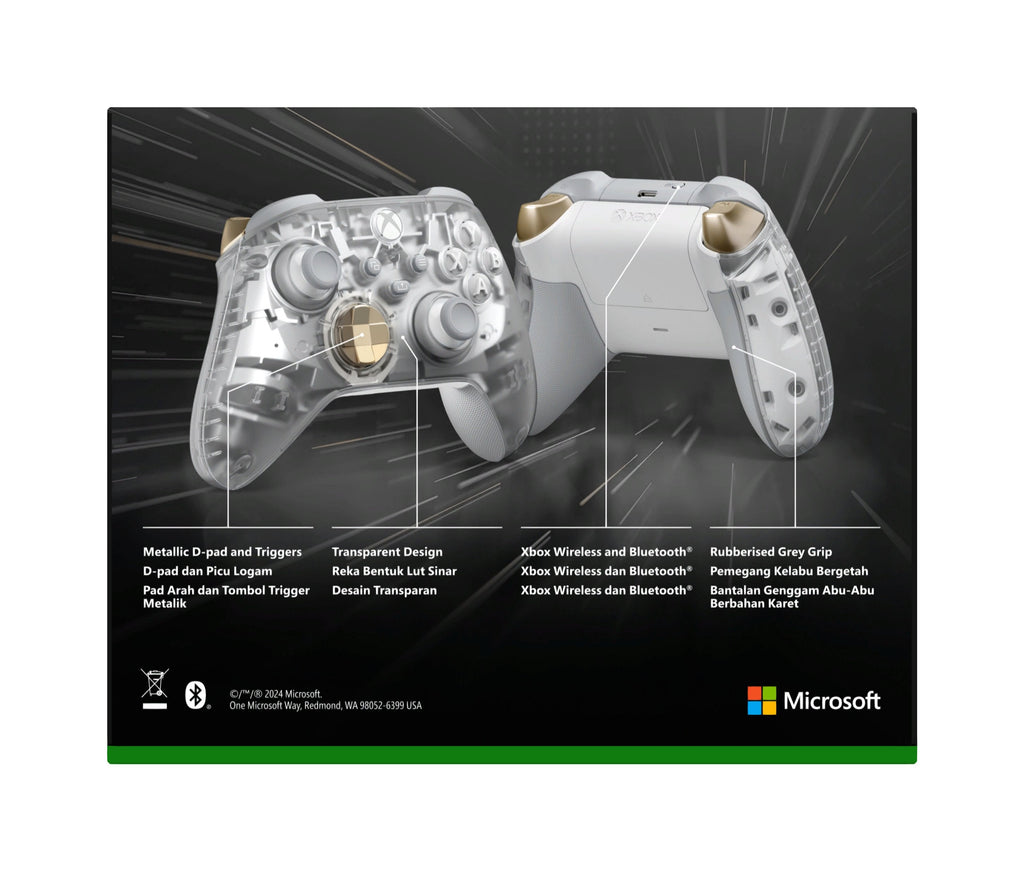 Microsoft Ghost Cipher Oro, Gris claro, Transparente Bluetooth/USB Gamepad Analógico/Digital Android, PC, Xbox One, Xbox Series S, Xbox Series X, iOS