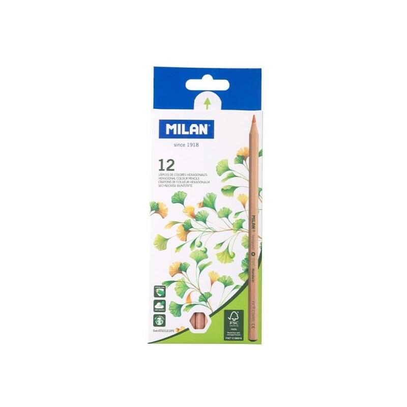 Milan Pack De 12 Lapices Hexagonales De Colores - Mina 2.9mm - Resistente A La Rotura - Madera Certificada Fsc -