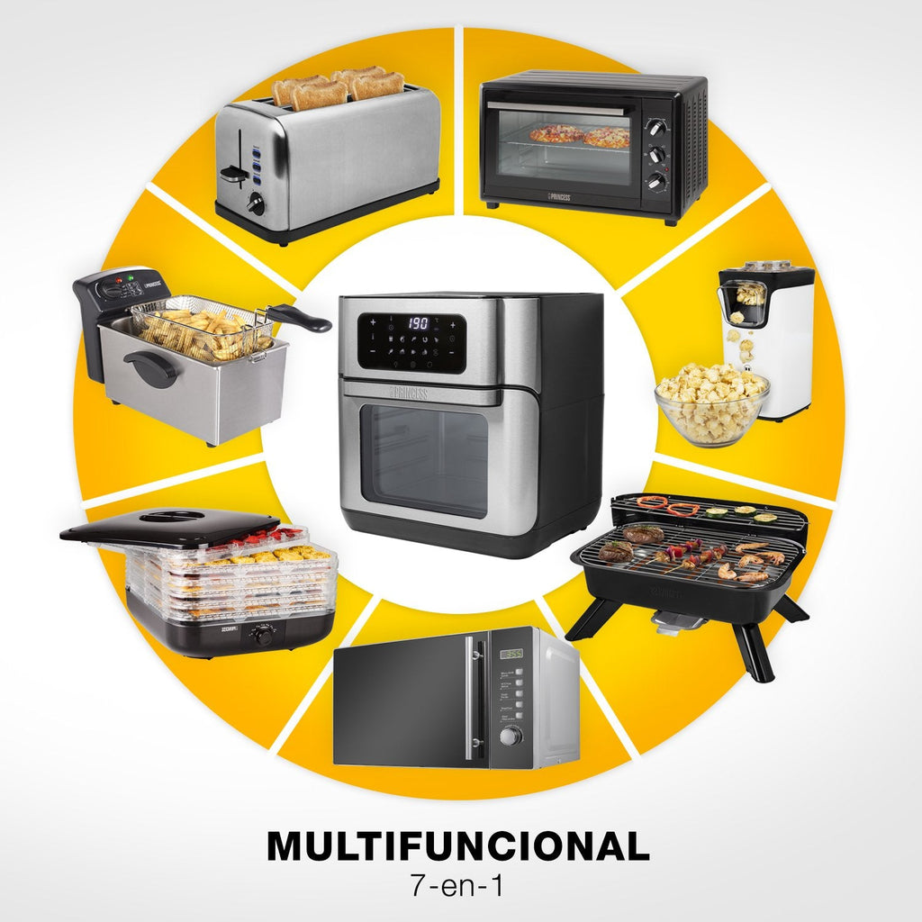 Aerofryer Oven de Princess, plancha de cocción, 3 rejillas para asar, cesta para asar, asa para la cesta, manual de instrucciones
