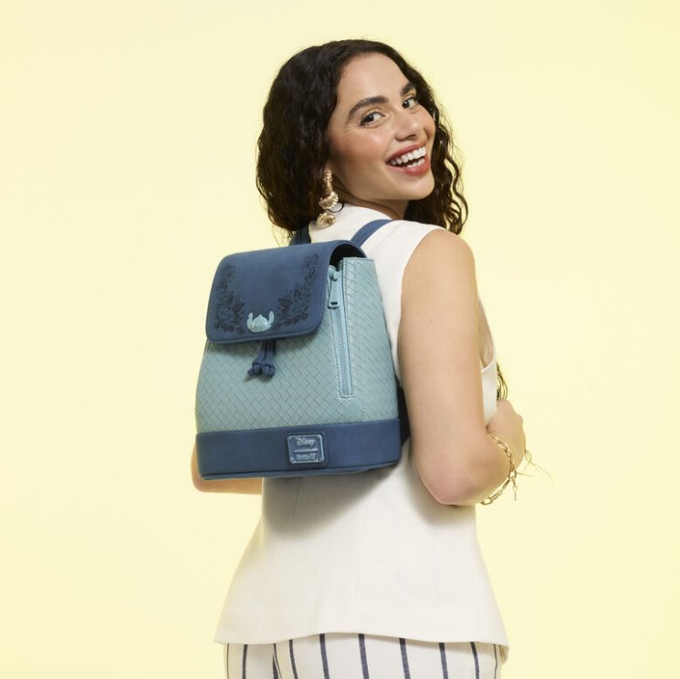 Loungefly Stitch Embroidered Floral Drawstring Mini mochila Mochila informal Azul Poliuretano (PU)
