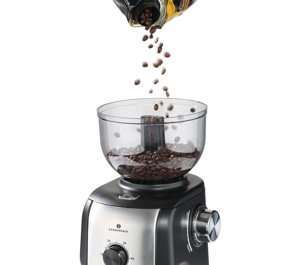 Zassenhaus Arabica, Molinillo, 450 g, Fresa cónica, Acero inoxidable, Negro, Plata, Transparente, Plástico, Acero inoxidable