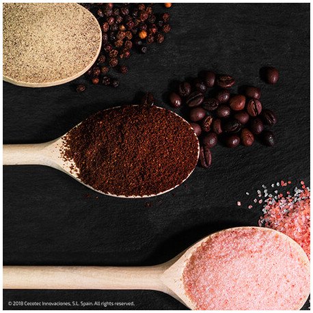 Máxima capacidad de 90 g con mediciones para calcular dosis de forma simple.