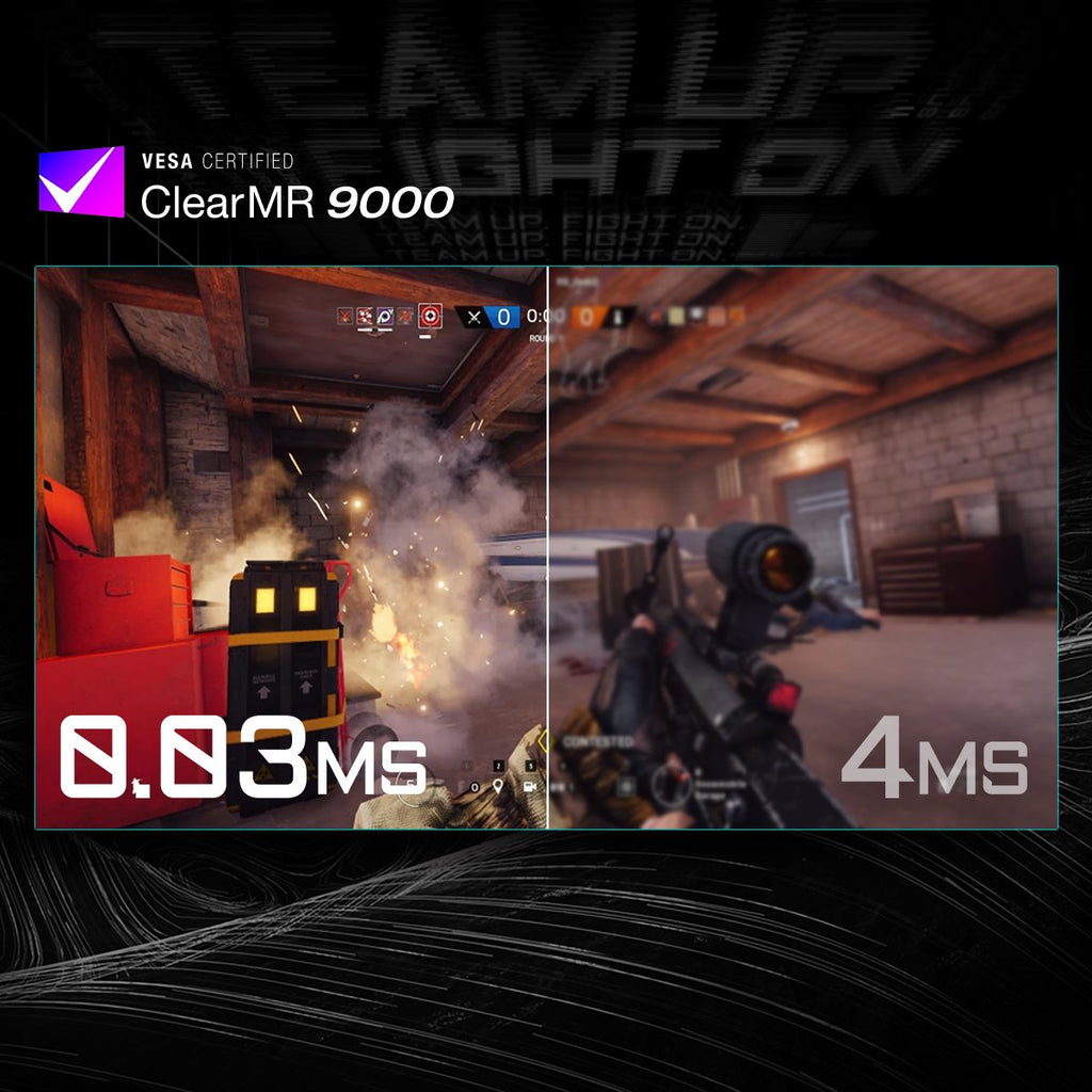 - VESA DisplayHDR True Black 400, AMD FreeSync Premium Pro, ClearMR 9000