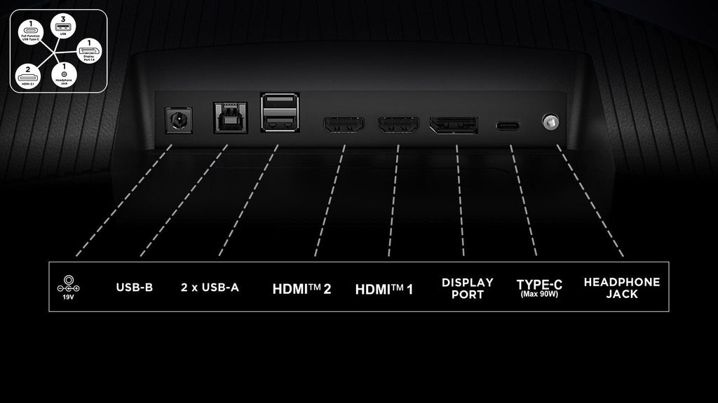 - Cables incluidos: Corriente alterna, HDMI, DisplayPort, USB Tipo C