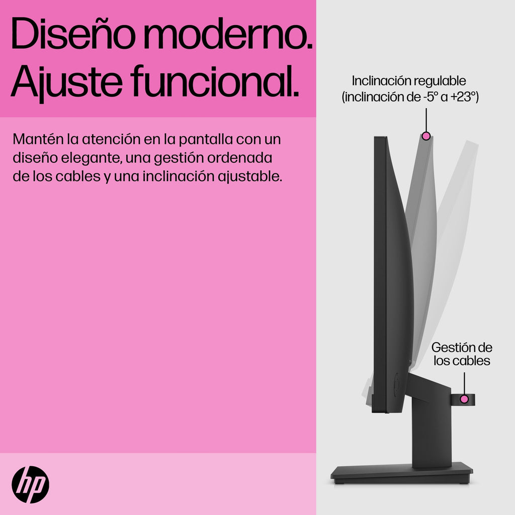 - Despeja el escritorio y mantén la atención en la pantalla con el bisel con microborde de 3 lados, la gestión ordenada de cables y el compacto soporte con inclinación ajustable para una visualización perfecta.