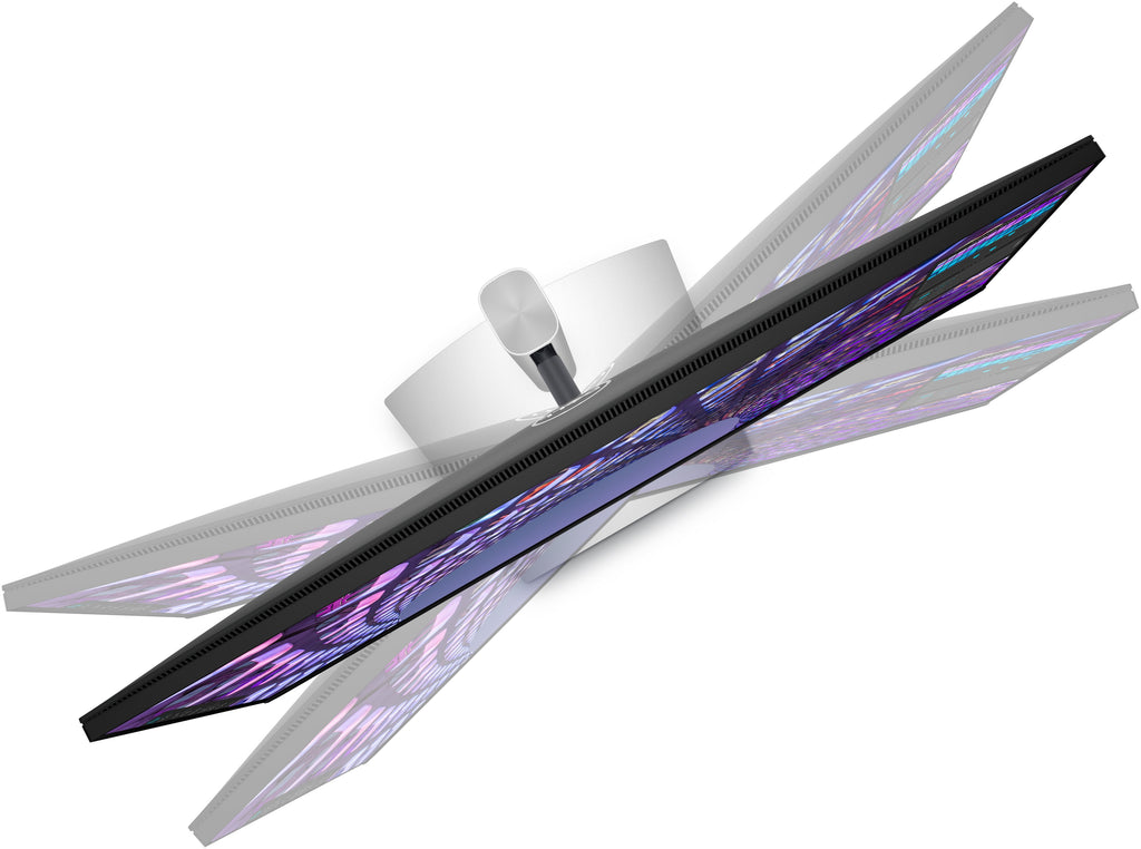 El increíble acabado negro y la pequeña base complementan un sistema de gestión de cables mejorado que oculta los cables en el elevador del monitor.