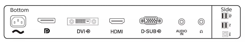 - Cables incluidos: VGA, HDMI, DisplayPort, Audio (3ˌ5mm), Corriente alterna