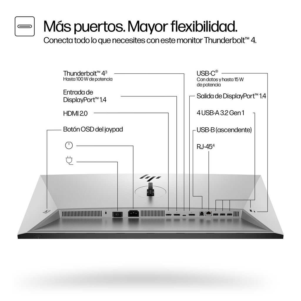 - Reduce el desorden y maximiza la productividad gracias a la conectividad Thunderbolt™ 4 que ofrece vídeo, datos a 40 Gbps y alimentación a través de un único cable.[2] Conecta todos tus accesorios y carga tu portátil con hasta 100 W, todo ello gracias al hub del monitor.