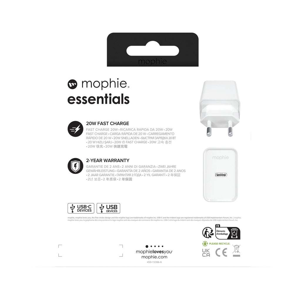 mophie essentials 20W USB-C PD wall adapter Universal Blanco Corriente alterna Carga rápida Interior