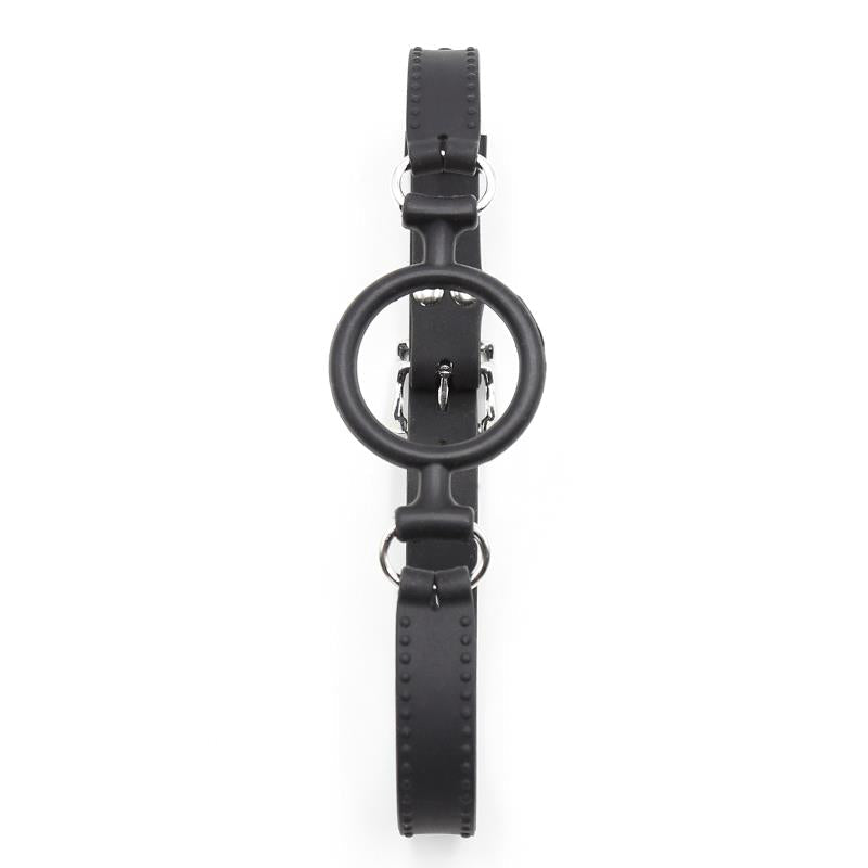 Una mordaza de aro abierto, ideal para que no solo tengas a tu sumiso/a en su sitio, si no que puedas usar su boca para lo que tu quieras. Es totalmente ajustable gracias a su hebilla.