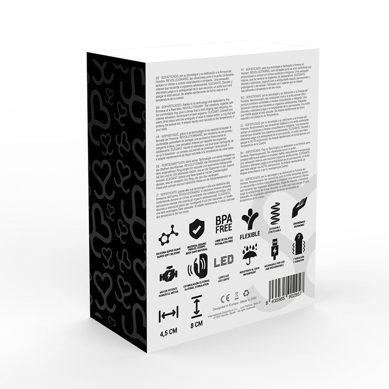 , las vibraciones junto a la anilla confortable aplican un climax a ambos cosquilleante e intrigante. Una sensación intensa que recuerda a orgasmos adolescentes.ELEGANTE