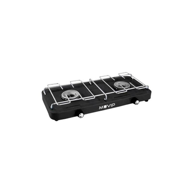 Muvip Cocina De Gas 2 Fuegos Con Parrilla Desmontable - Base Antideslizante - Color Negro
