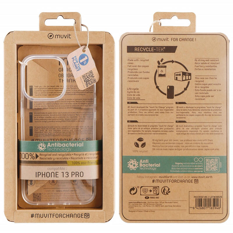 Muvit For Change Funda Apple Iphone 13 Pro Recicletek Antibacterias Transparente